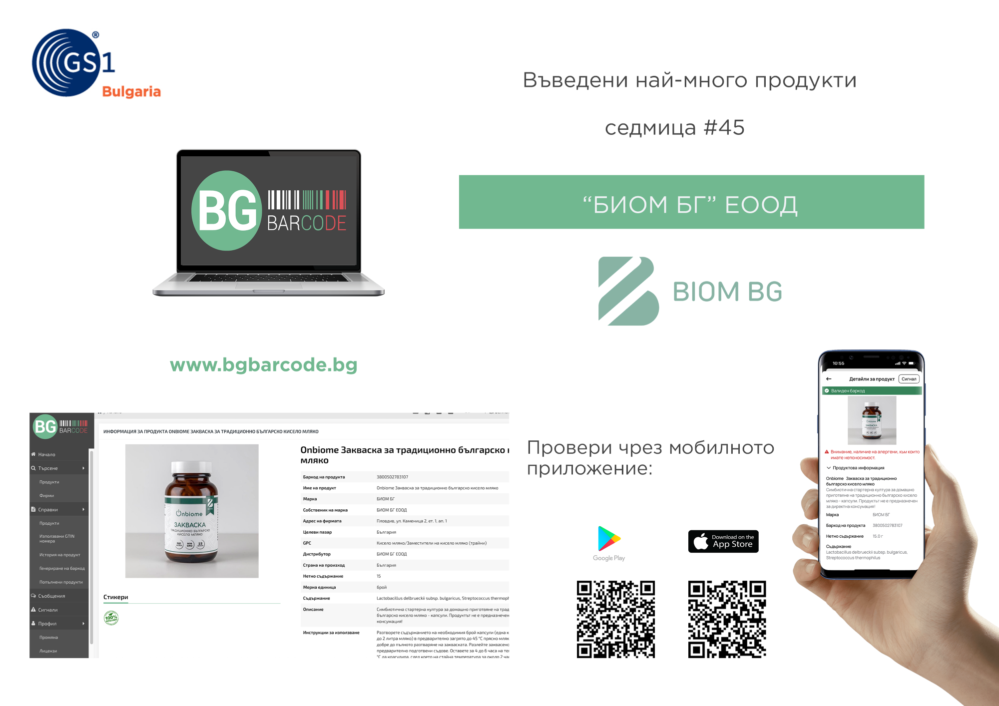 Българската компания с фокус към микробиома “БИОМ БГ” ЕООД въведе изчерпателна стандартизирана продуктова информация за своята линия продукти в електронния каталог БГ Баркод.