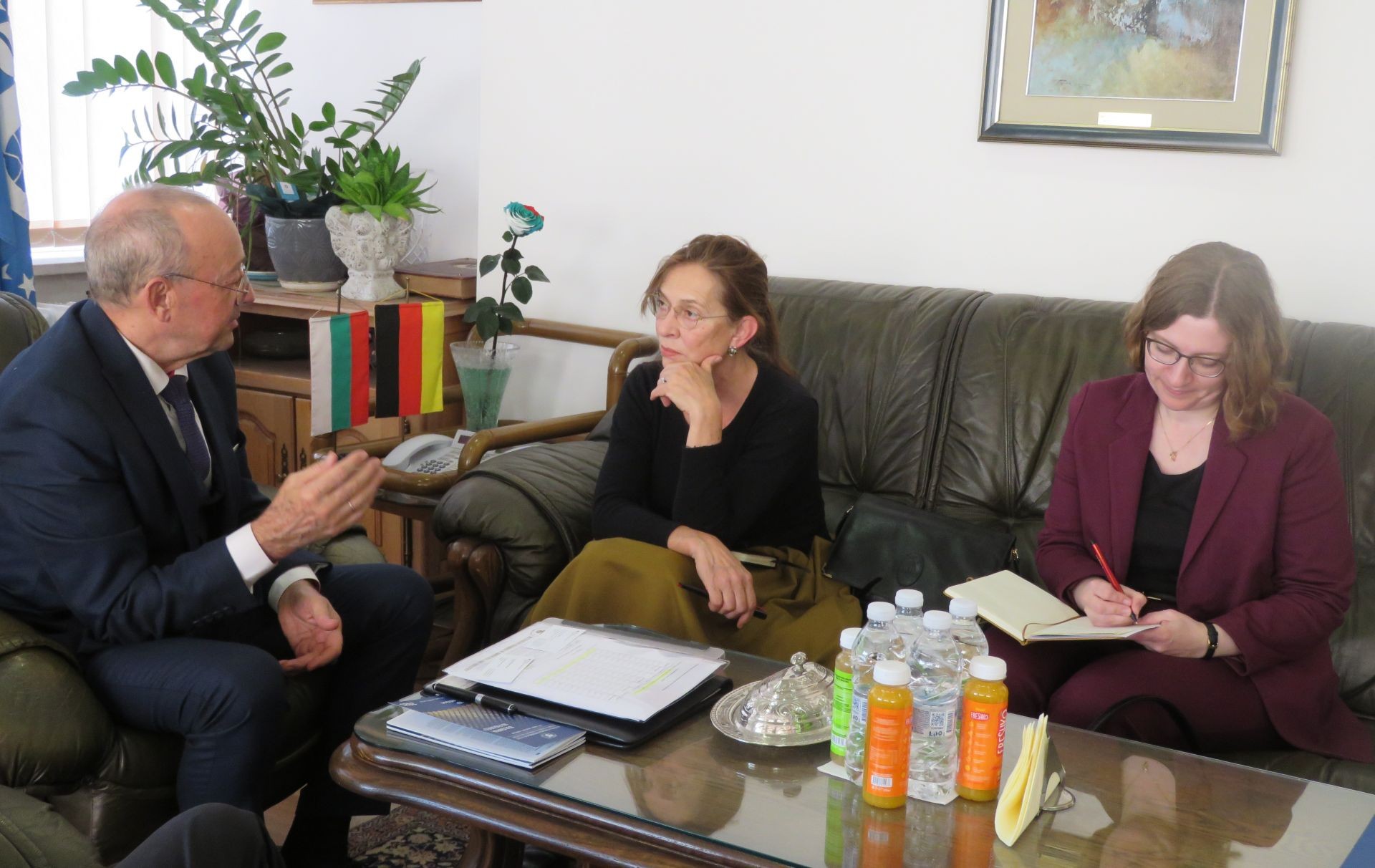 H.E. Irene Maria Plank, Extraordinary and Plenipotentiary Ambassador of the Federal Republic of Germany in Sofia, visited BCCI and talked with its President Tsvetan Simeonov. The meeting was also attended by Dr Sonia Rimmer, Head of the Economics Department to the Embassy, and Sonia Miklei, General Director of the German-Bulgarian Chamber of Industry and Commerce.