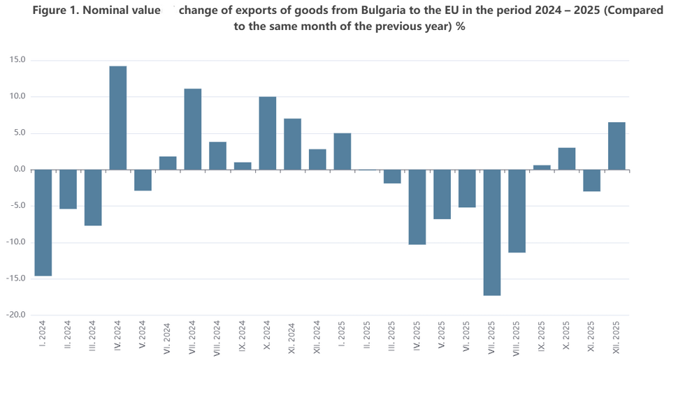 In December 2025, exports of Bulgarian goods to the EU increased by 6.5% compared to December 2024, reaching BGN 4,268.2 million.