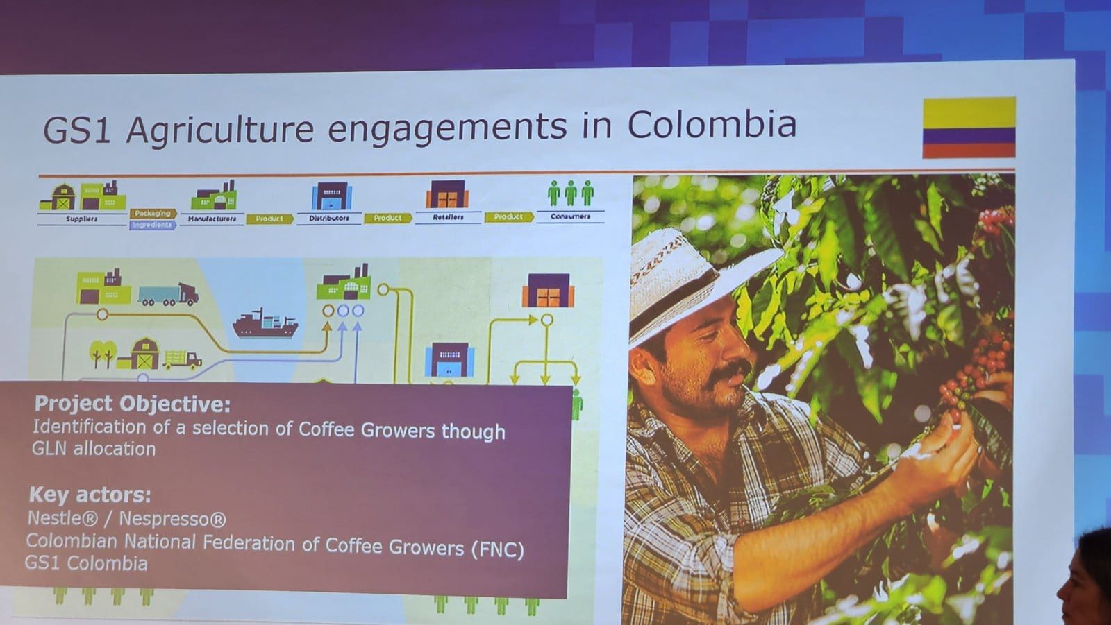 Ключовата роля на стандартите на GS1 бяха илюстрирани с успешни практики по всички континенти: от производството и търговията с киви в Нова Зеландия, на месо в Ирландия, на кафе в Колумбия и Перу, на цветя в Кения, примери от Индия и др., които чрез използване на уникалните идентификатори за продуктите и местоположението на производствените помещения, бази и земеделски земи осигуряват максимална информираност, сигурност на потребителите и устойчиво търсене на пазара.