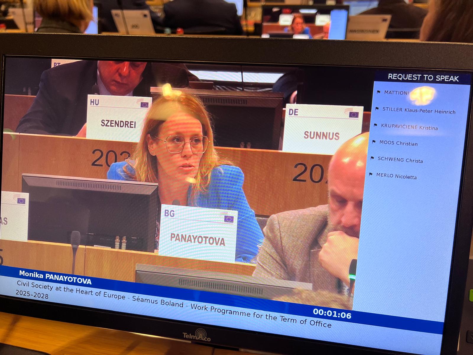 По време на дискусията Моника Панайотова подчерта ключовата роля на гражданското общество и социалните партньори за изграждането на Европа, която отговаря на реалните очаквания на хората. „Гражданското общество е и трябва да бъде в сърцето на Европа, защото именно организациите на гражданското общество, представителите на бизнеса и организациите на работещите са най-близо до хората. Ние усещаме реалния пулс на работните места, на бизнес средата и на местните общности и носим уникалната отговорност да пренасяме тази реалност в европейския дневен ред“, заяви Панайотова.