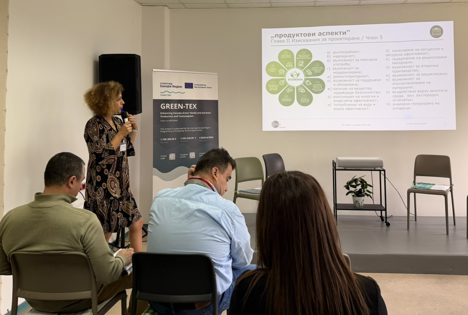 Акцент беше поставен върху новите регулации на Европейския съюз, включително предстоящия Регламент за екопроектиране на устойчиви продукти (Ecodesign for Sustainable Products Regulation – ESPR) и въвеждането на Цифров продуктов паспорт (Digital Product Passport – DPP). Участниците дискутираха, как екопроектирането ще промени производствените процеси и как компаниите могат да се подготвят своевременно, за да останат конкурентоспособни.
