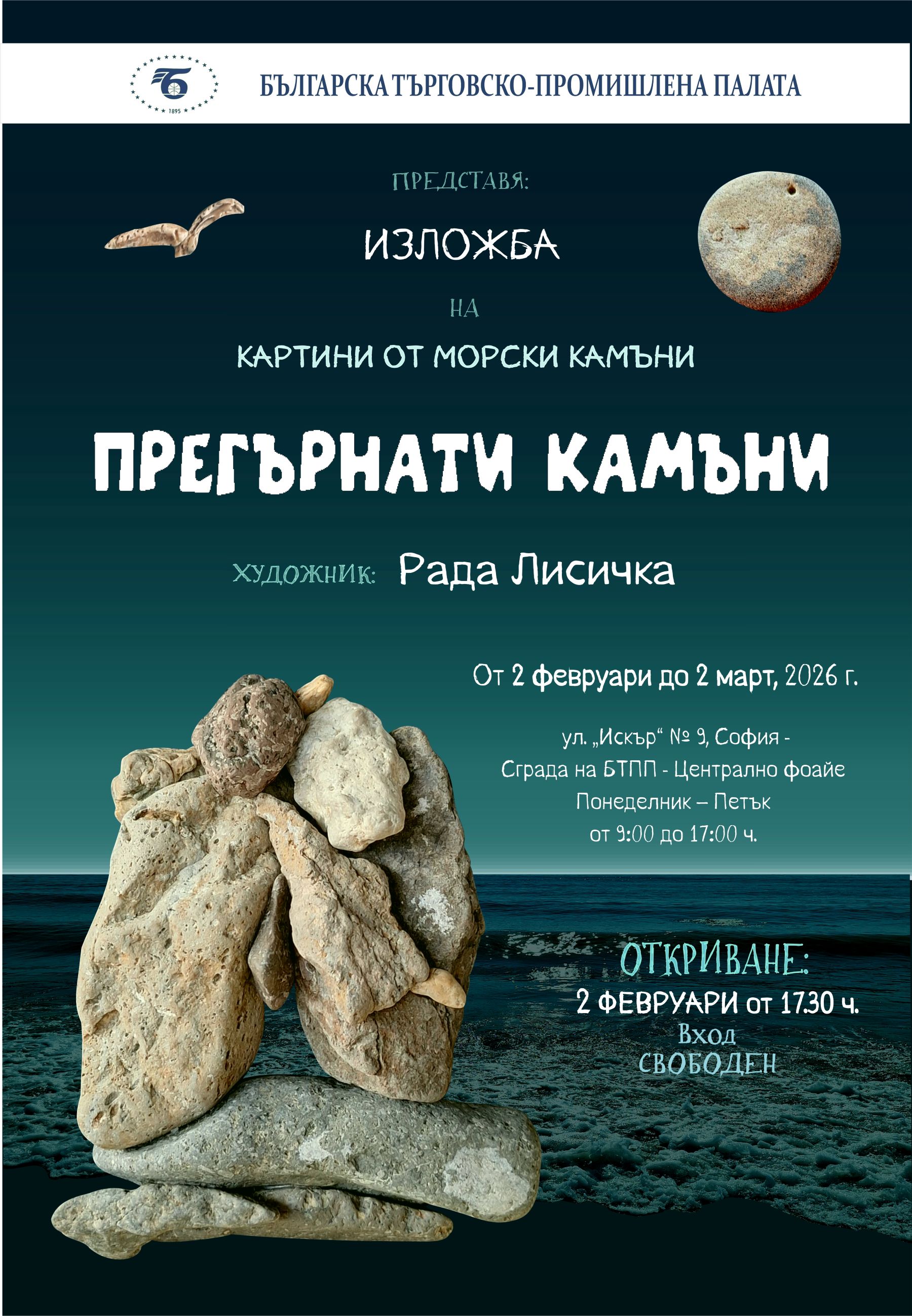 На 2 февруари – понеделник, от 17:30 ч. във фоайето на Българската търговско-промишлена палата ще бъде открита официално първата за новата 2026 г. художествена изложба в Палатата.