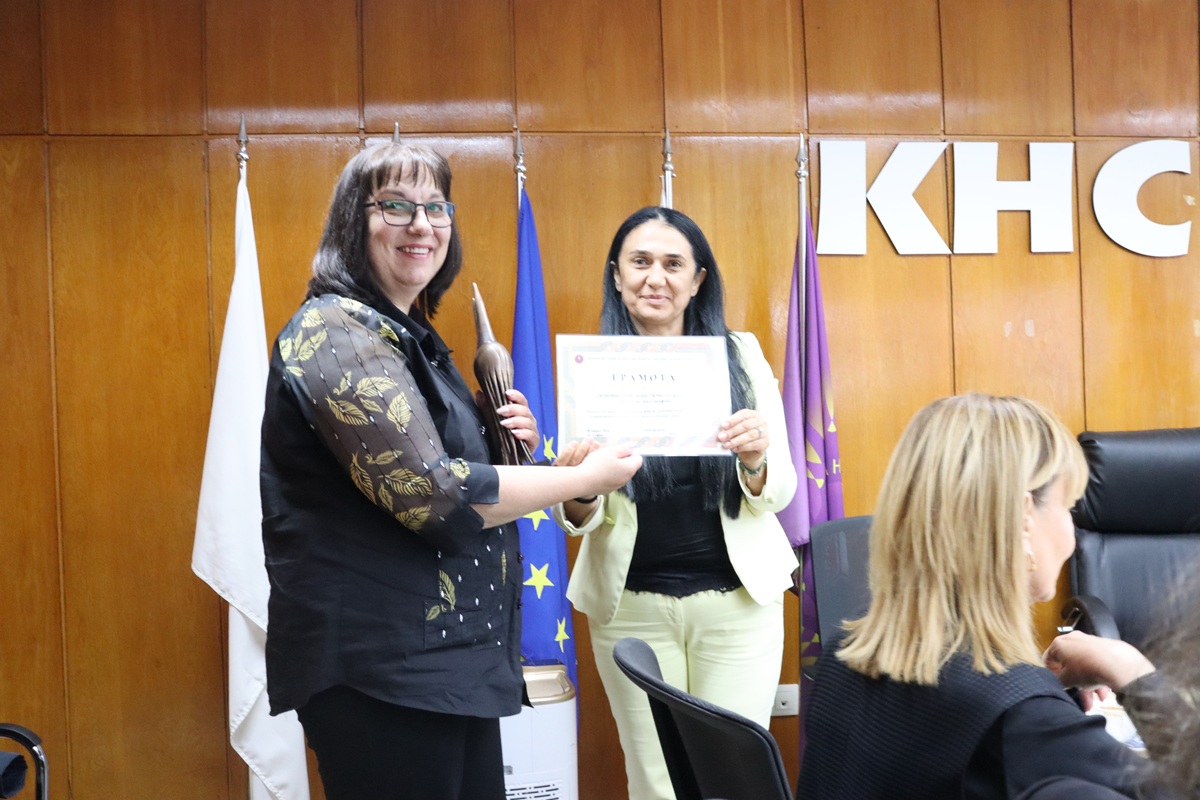 Д-р Иван Кокалов, председател на Федерацията на синдикатите в здравеопазването, пък отличи управителя на Центъра за психично здраве „Проф. Никола Шипковенски“ ЕООД - д-р Ана Попова- Върбанова. Д-р Евгени Папазов от центъра представи нововъведенията в начина на работа в лечебното заведение, свързани с намаляване на стреса.
