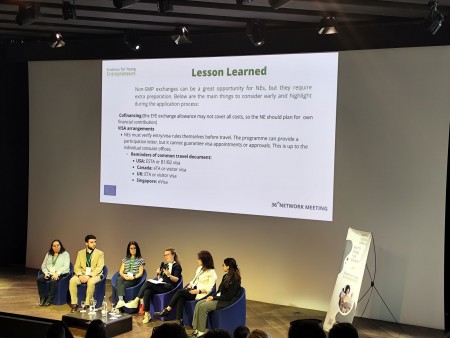 Представители на Изпълнителната агенция за Европейския съвет по иновациите и за малките и средните предприятия (EISMEA) представиха последните новости в програмата „Еразъм за млади предприемачи“. Сред тях са промените в онлайн платформата, опростяването на въпросника след провеждане на обмена и актуализирането на критериите за търсене на партньори. Представена бе и актуална статистика за програмата – до момента са регистрирани над 60 000 участници и са реализирани повече от 14 500 предприемачески обмена. По време на срещата бе представен и обновеният наръчник за участие в програмата.