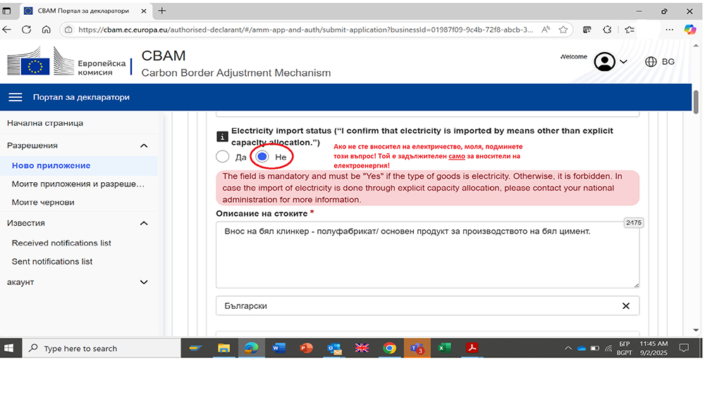 Това означава, че тези, които внасят повече от 50 тона цимент, желязо и стомана, алуминий, торове, както и всички вносители на електроенергия или водород, трябва да са подали заявление или да са получили разрешение към момента на вноса. Вносителите, които все още не са подали заявления, трябва да действат бързо сега, за да избегнат риска от смущения, забавяния или санкции. Заявленията трябва да бъдат подадени преди вноса и най-късно до 31 март 2026 г. за всички засегнати дружества вносители.