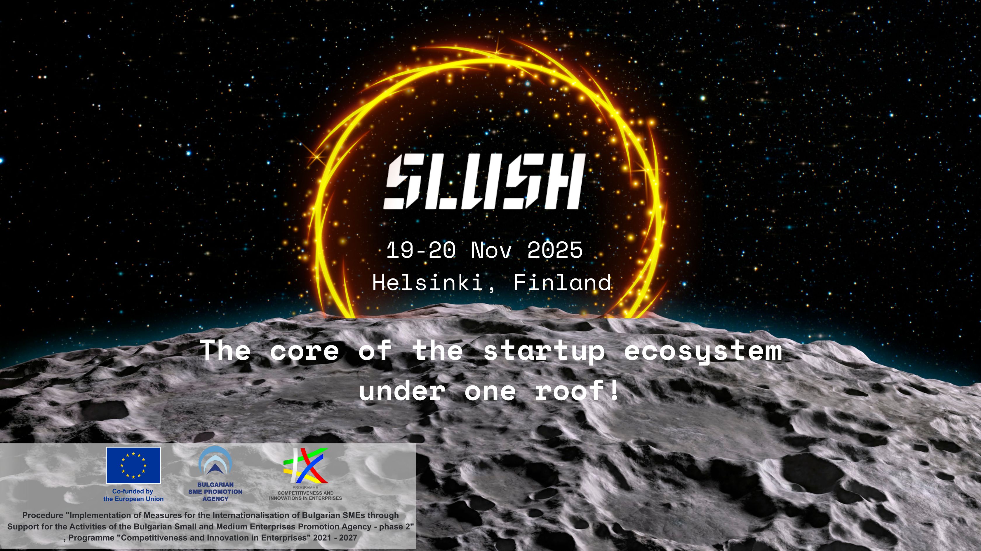 Изпълнителната агенция за насърчаване на малките и средните предприятия (ИАНМСП) организира участие с институционален щанд на Международната конференция за стартиращи предприятия, технологии и инвестиции Slush 2025, която ще се проведе от 19 до 20 ноември 2025 г. в Хелзинки, Финландия.