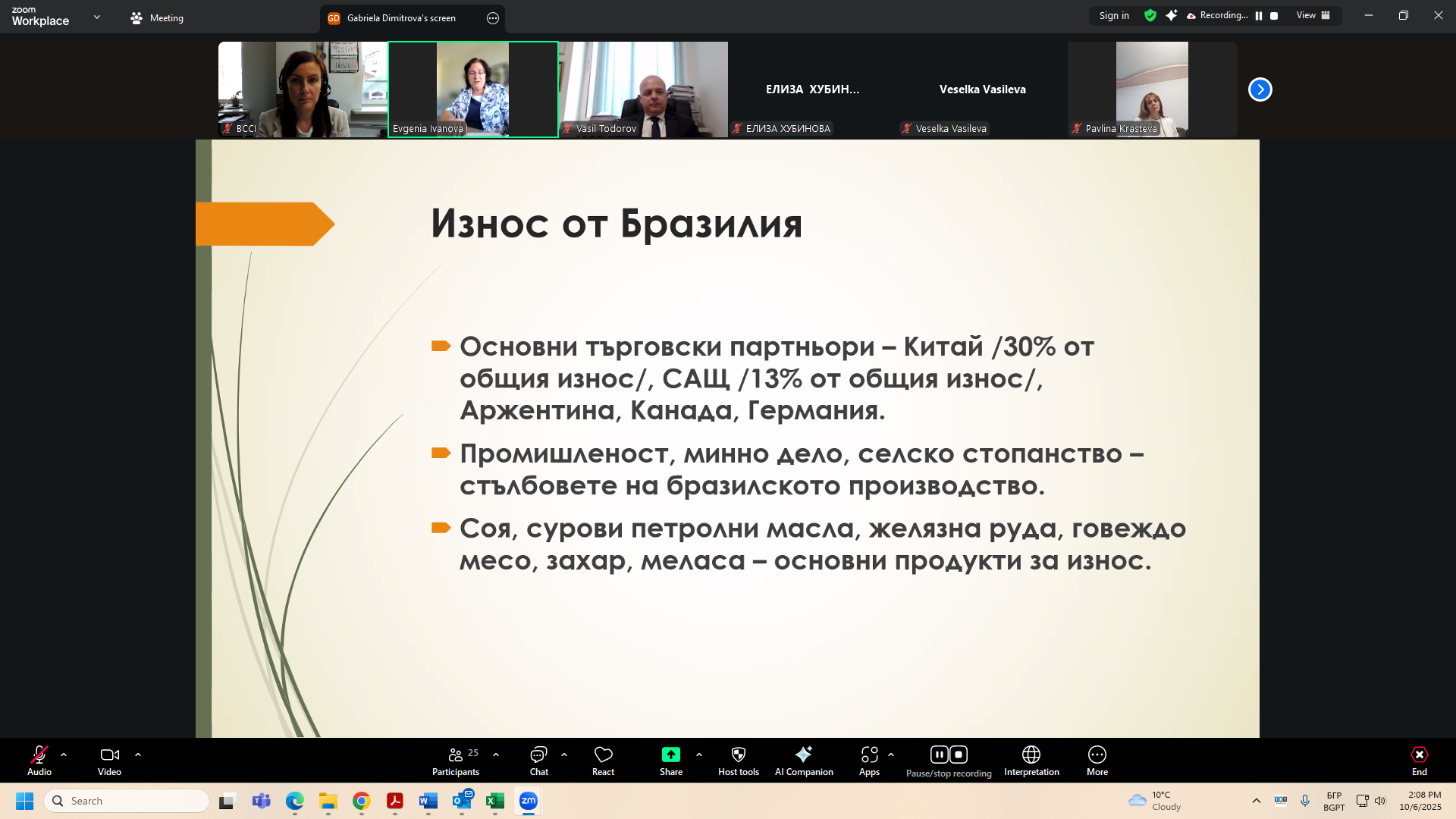 Заместник-председателят на БТПП отбеляза, че двустранната търговия между България и Бразилия расте стабилно през последните 10 години, като през 2024 г. възлиза на 615 млн.щ.д.