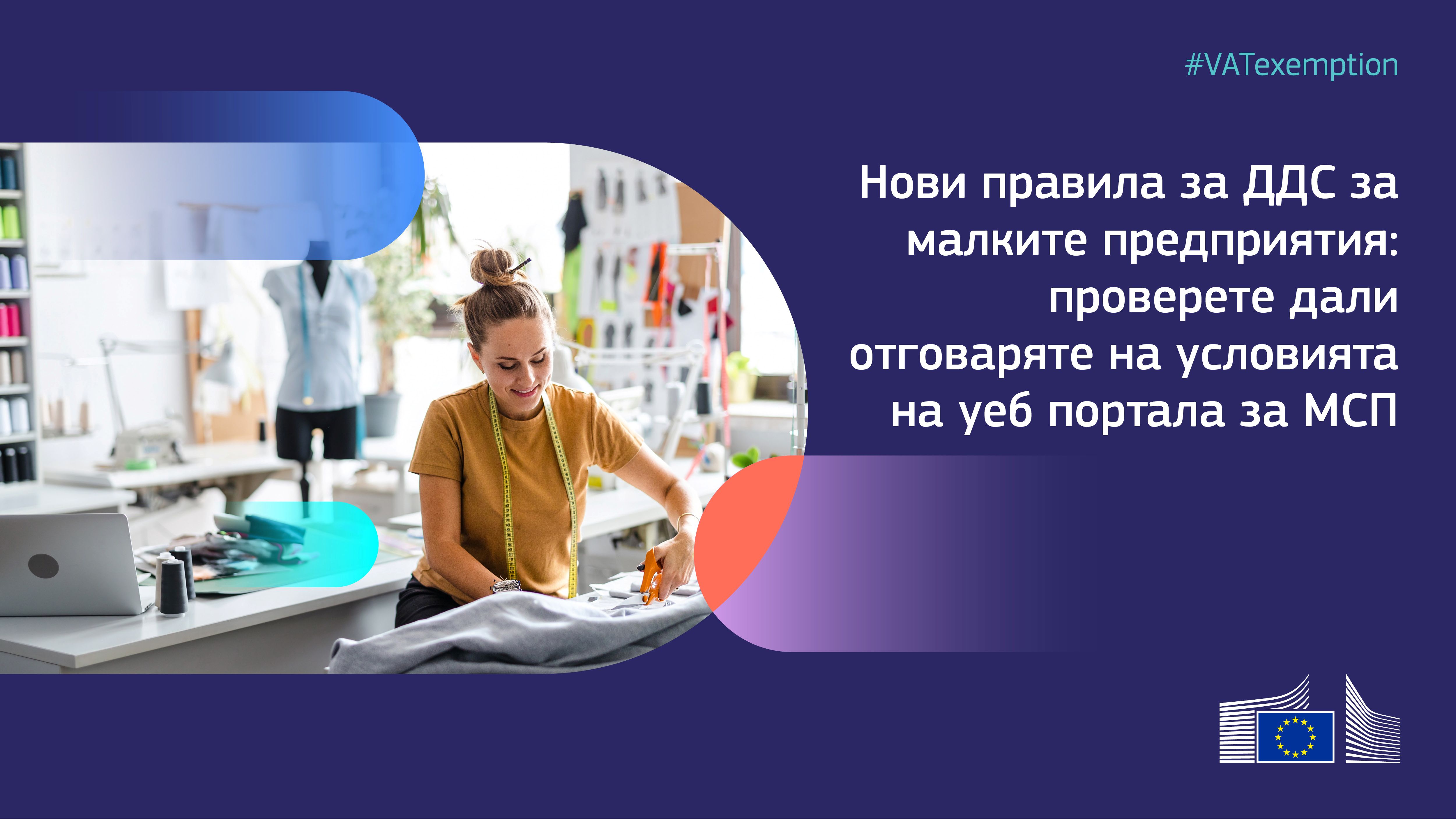 ГД „Данъчно облагане и митнически съюз“ на Европейската комисия информира относно новия режим на ДДС за МСП. С тази инициатива се въвежда опростена рамка за ДДС за малките предприятия в целия ЕС, като се помага за намаляване на тежестта на спазването на изискванията и за отключване на нови трансгранични възможности.