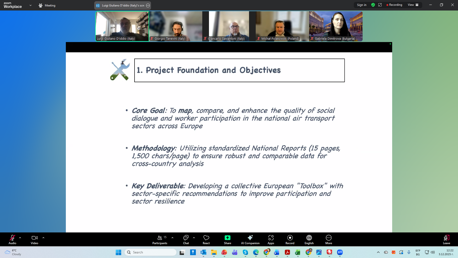 Представители на Българската търговско-промишлена палата взеха участие в онлайн среща по проект TRANSFER - Превръщане на сектор управление на въздушното движение в успешен пример на споделени практики на социален диалог. Цел на срещата бе подготовка на проучване, с помощта на което екипът на проекта, включващ партньори от Италия, Полша, България, Румъния и Черна гора, ще анализира съществуващите практики за участие на работниците в подсекторите на гражданската авиация в участващите държави.