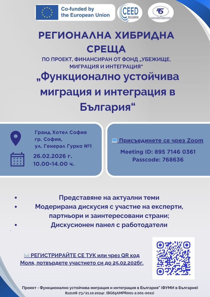 Партньорите подготвят още една регионална среща, този път в София. Тя ще се проведе на 26 февруари /четвъртък/ от 10.00 ч. в Гранд хотел София, ул. „Ген. Гурко“ 1, и онлайн в платформата Zoom.