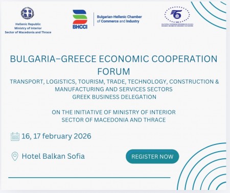 Българската търговско-промишлена палата има удоволствието да информира, че заедно с Българо-гръцката търговско-промишлена камара е партньор на предстоящия българо-гръцки бизнес форум, който ще се състои на 16 и 17 февруари 2026 г. в София Балкан Палас хотел от 10,00 часа.