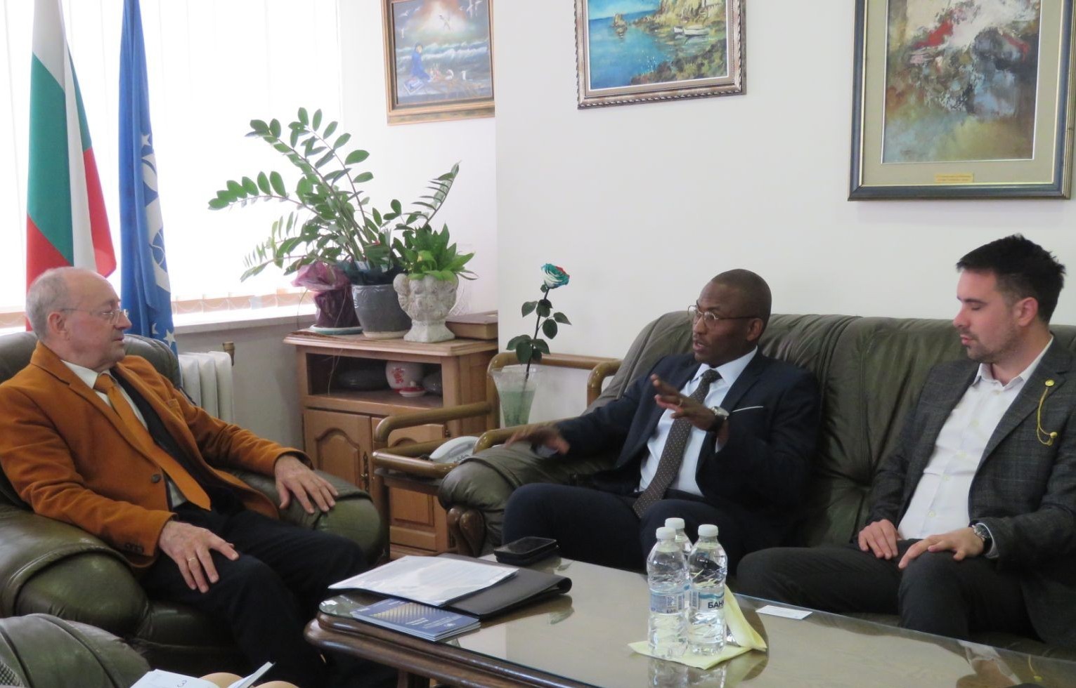 В Българската търговско-промишлена палата се състоя среща с представители на Ийст Бридж бизнес камара - Стефан Пеев и Димитър Турлаков, които представиха на председателя Цветан Симеонов Ерик Лионел Ликонет от Бенин, основател на компанията Liam Partners и Invest in Benin Company.