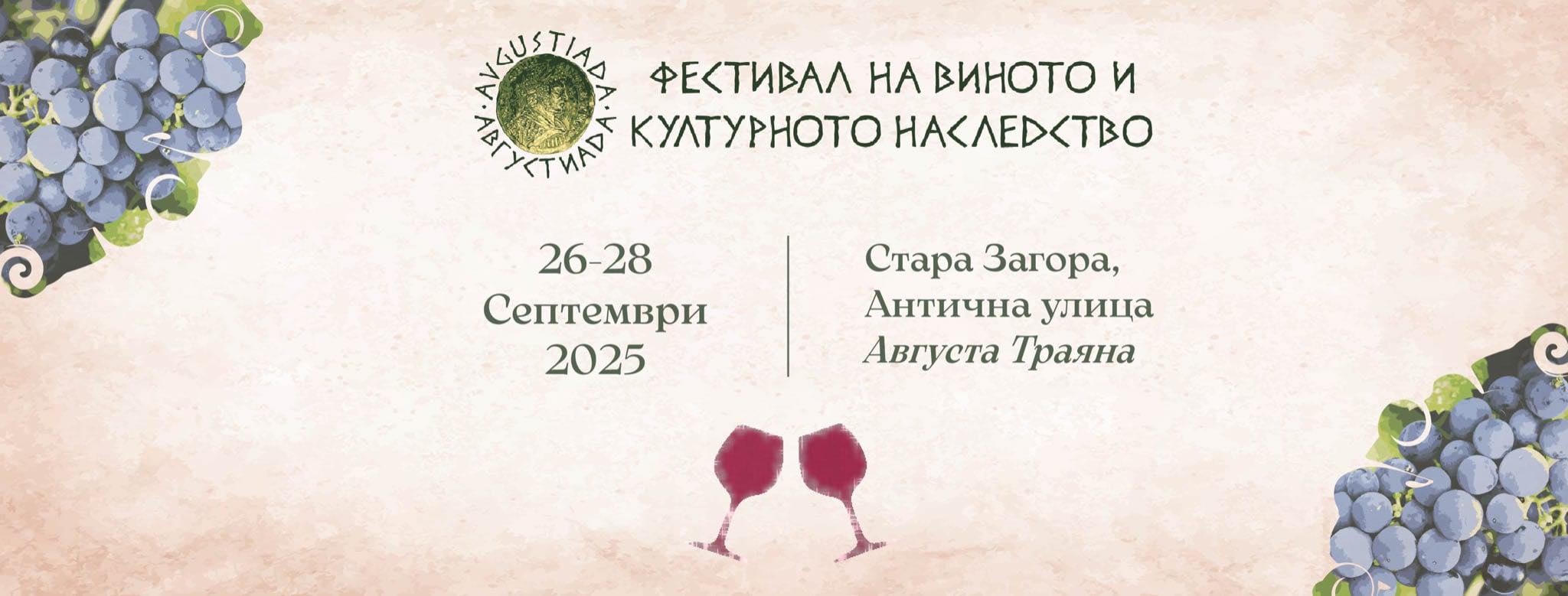 Традиционният за Стара Загора Фестивал на виното и културното наследство Августиада тази година ще проведе тринадесетото си издание от 26 до 28 септември на Античната римска улица в центъра на града. Повече информация за събитието можете да намерите на www.avgustiada.com, а подробната програма - тук.