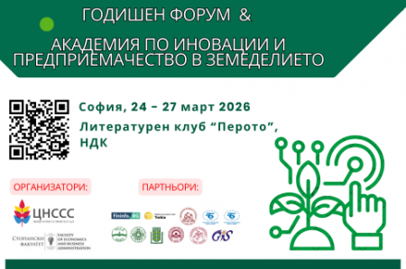 Годишен форум и Академия по иновации и предприемачество в земеделието ще се проведе в периода 24-27 март 2026 г. в Литературен клуб „Перото“, Национален дворец на културата.