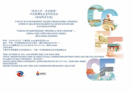 Центърът за насърчаване на сътрудничеството в селското стопанство между Китай и страните от ЦИЕ (ЦНСССКЦИЕ), в сътрудничество с Ningbo Central and Eastern Europe Expo and Cooperation Promotion Center, организира събитието „Гласът на партньорите: Заедно пишем нова страница“ – серия от диалози в рамките на Експо Китай–ЦИЕ. Събитието ще се проведе на 30 октомври, четвъртък, през платформата Zoom, като започва в 10:00 ч българско време (16:00 ч китайско време).