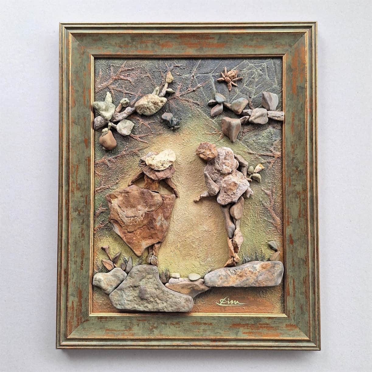 Преди около осем години случайно подрежда рибки от шепа камъчета. Така започва новото и арт-увлечение – картини от камъни... . весело, шарено, романтично, с аромат на море…