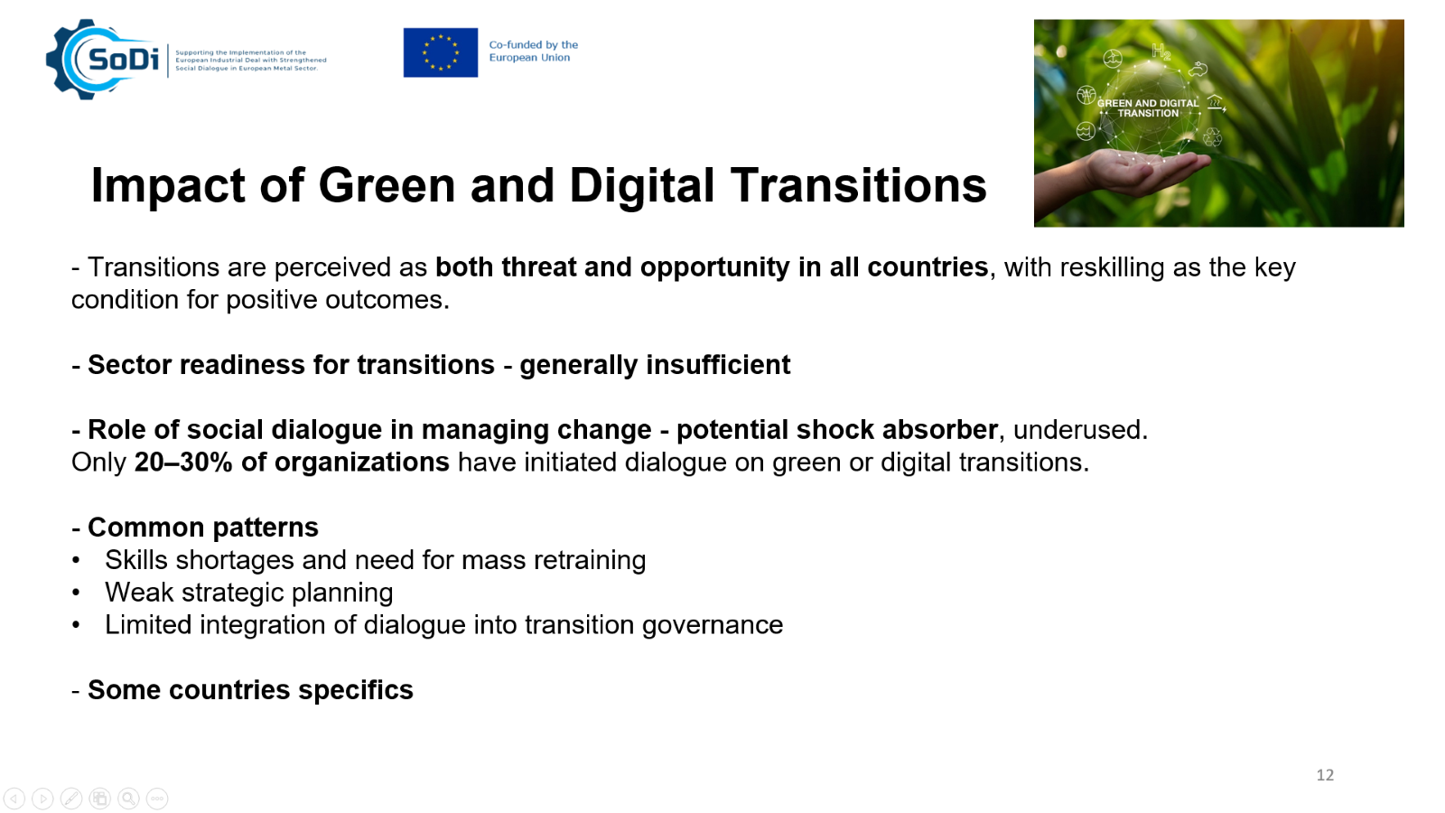 Укрепването на социалния диалог изисква инвестиции в изграждане на капацитет, институционални реформи и механизми за прилагане. То също така изисква преминаване към ранно, стратегическо участие на социалните партньори във вземането на решения относно зеления и цифровия преход. Само чрез смислено тристранно сътрудничество металният сектор може да превърне предизвикателствата на трансформацията във възможности за устойчив растеж, достойна работа и дългосрочна индустриална конкурентоспособност в Европа и съседните ѝ страни.