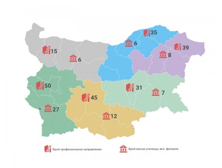 В актуалната профилна и териториална структура на висшето образование в България продължават да съществуват различни по своя характер и дълбочина дисбаланси, включително по отношение на търсенето и предлагането на образователни услуги и реализацията на завършилите на пазара на труда. Това става ясно от Национална карта на висшето образование в Република България (НКВОРБ) за 2025 година.