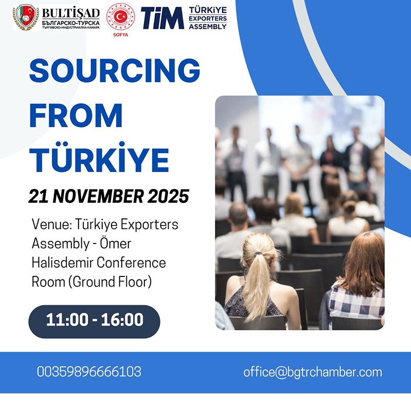 Събитието „Sourcing from Turkiye“ се организира съвместно от Българо-турската търговска камара (BULTISAD) и TİM, с подкрепата на Посолството на Република Турция в България.