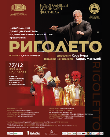 Новата сценична реализация на "Риголето" събра в елитен международен творчески екип световно признатия оперен певец и диригент Хосе Кура, оперния режисьор Огнян Драганов и румънския художник Каталин Йонеску-Арборе, който е автор на оригиналните костюми и внушителната сценография. Съзвездие от оперни гласове ще зарадват почитателите на оперното изкуство, които ще изберат да споделят в празничната декемврийска вечер преживяването "Риголето" - операта, която вече 174 години неизменно присъства в оперните афиши и шества триумфално по оперните сцени у нас и по света.