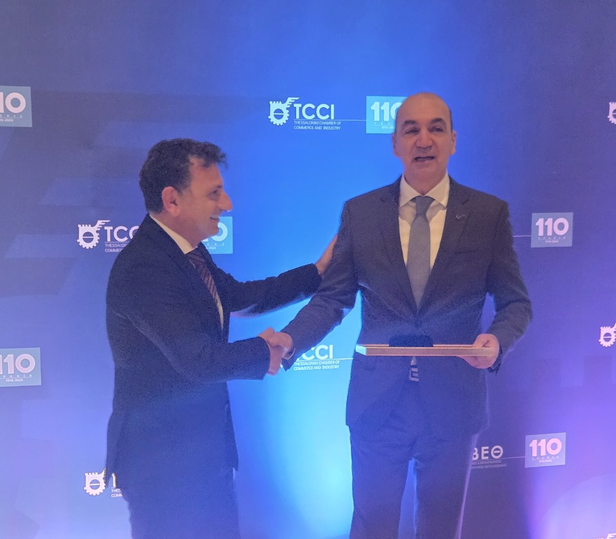 A plaque and a certificate were presented on behalf of the Board of the Bulgarian Chamber of Commerce and Industry (BCCI) to the President of the Thessaloniki Chamber, Ioannis Masoutis, in recognition of their long-standing partnership.