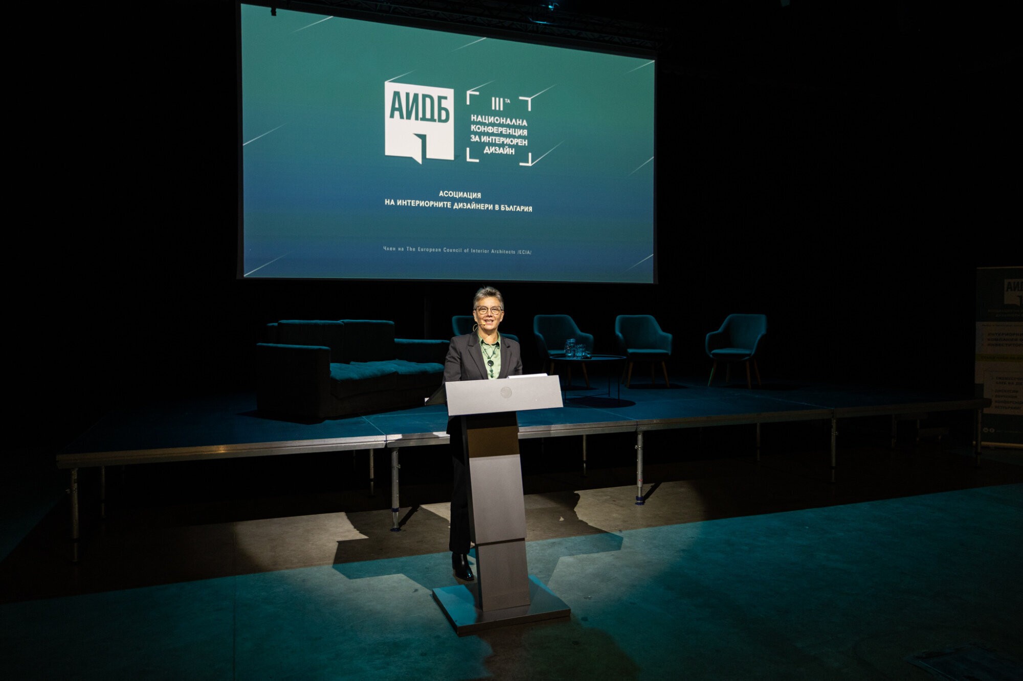 Третата национална конференция за интериорен дизайн откри и води г-жа Гена Събева – един от основателите на АИДБ и неин председател от основаването й през 2011 г. Тя представи организацията, нейната структура, мисия, визия и дейности.