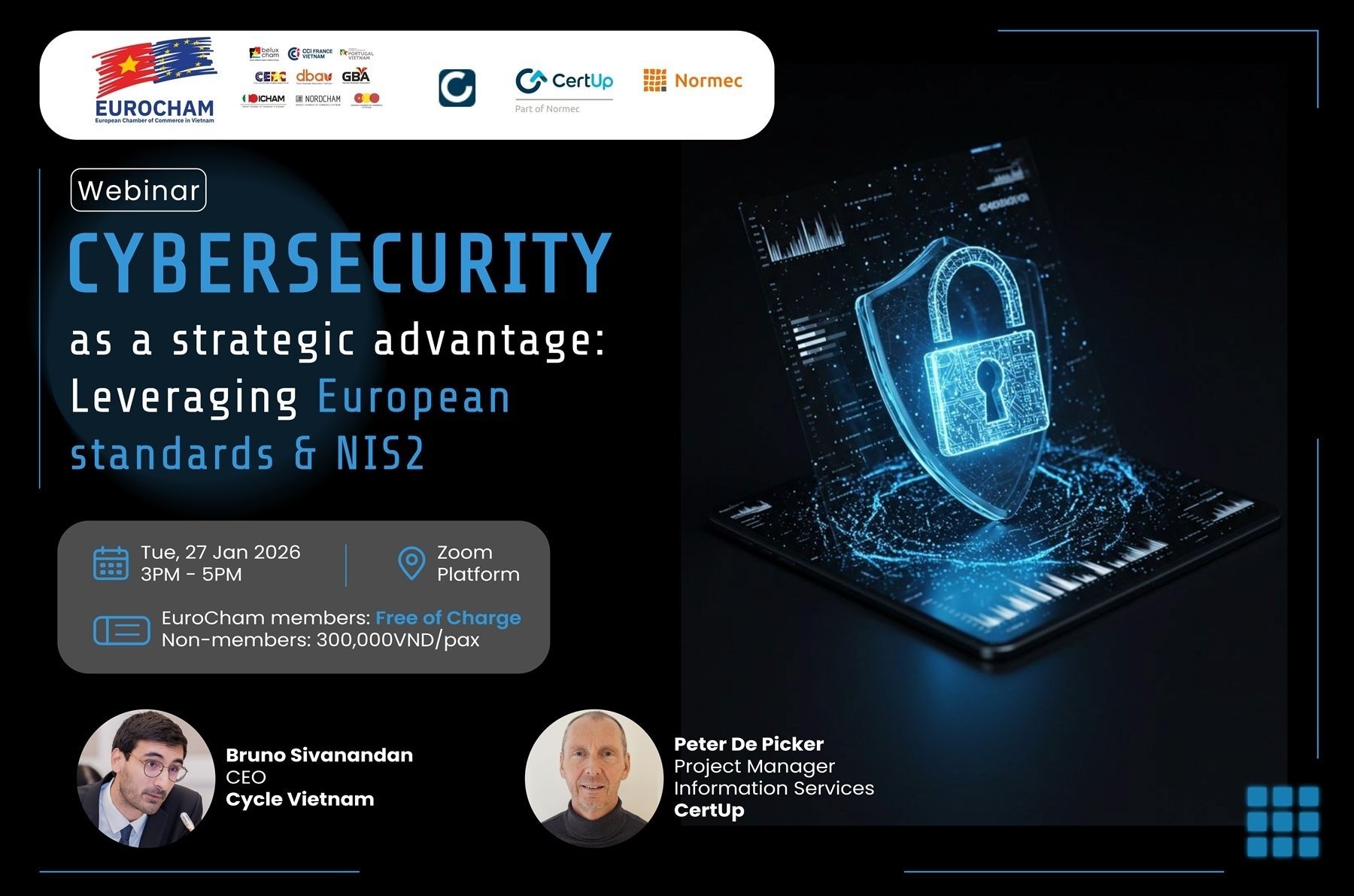 Този уебинар ще предостави ясен преглед на развиващата се европейска киберсигурност, ще подчертае нейните практически последици за бизнеса във Виетнам и ще предложи практически насоки за висшите ръководители на компаниите, които търсят структуриран и прагматичен подход към киберсигурността.