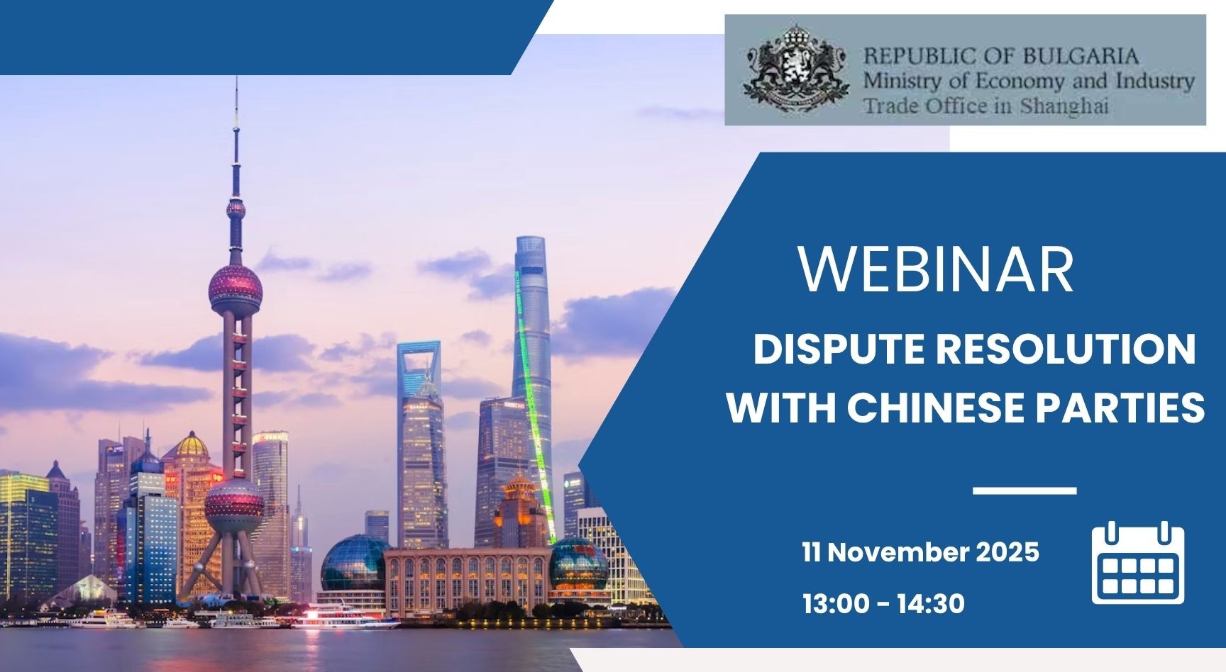 Уебинар за българския бизнес "Стратегии за успешно разрешаване на спорове с китайски контрагенти"