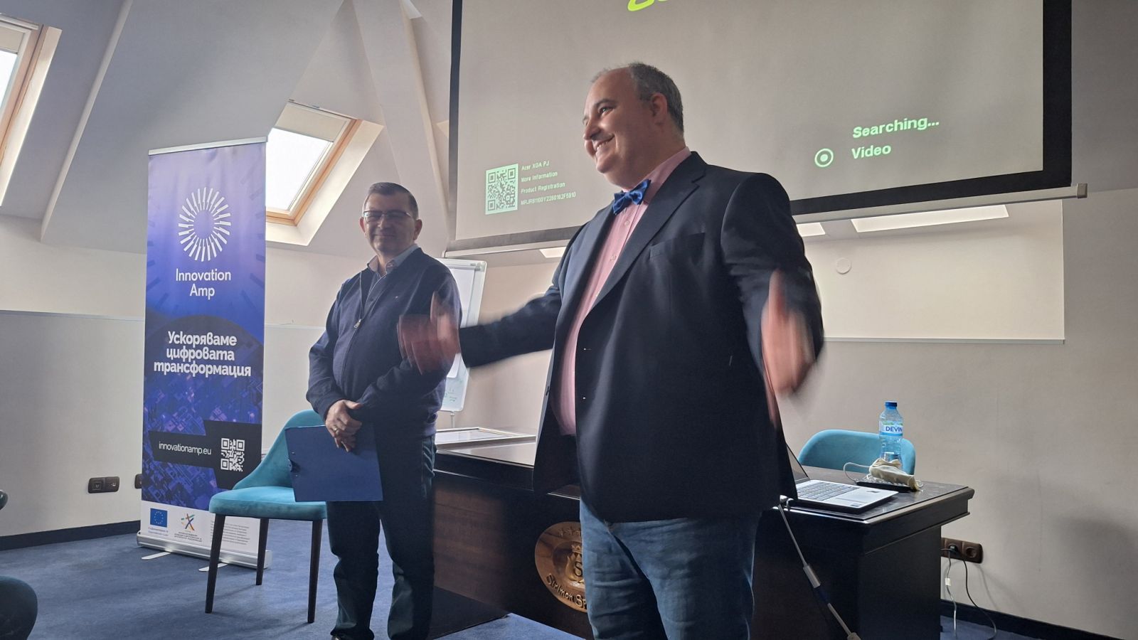 В същия контекст – между опита на поколенията и предизвикателствата на бъдещето, беше представен кратък поглед към една от най-динамично развиващите се теми на съвременния бизнес: дигиталната трансформация и изкуствения интелект. По темата „Ускоряване на цифровата трансформация и внедряване на изкуствен интелект в работните процеси“ говори Герасим Славов, който представи възможностите, които Innovation Amp и Стратегическият център за изкуствен интелект предоставят в подкрепа на бизнеса.